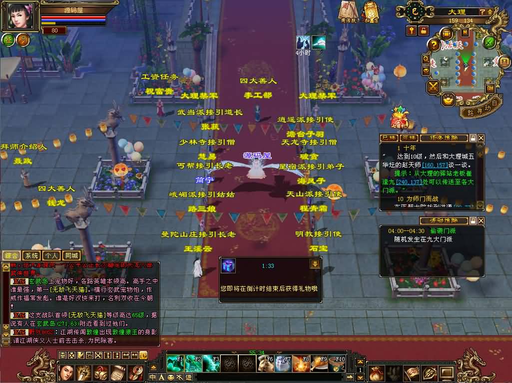 6、修改上线赠送的东西,上线不在送元宝,只有10J和100JZ,大理做任务可获得大量交子,完成后去洛阳冬冬换元宝。