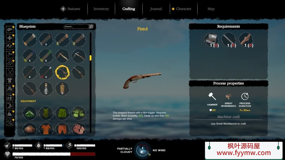 从最简单的木棍与石头工具到当时最先进的火枪、金属铠甲与器械,游戏中涵盖了数百种能够制作的生存物品。你还可以建造从最原始的皮革晾晒架到工业时代之前的机械装置等一系列工坊设备。